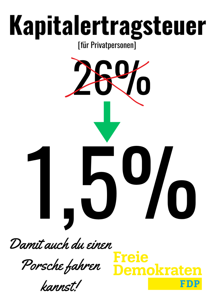 Als potenzieller deutscher Bundeskanzler sind mir viele Dinge besonders wichtig. Mein vorrangiges Ziel ist es, die Steuern für die unteren 90 % der Gesellschaft massiv zu senken. Besonders die arbeitende Mitte leidet unter der aktuellen Last – ein Paradebeispiel ist die Kapitalertragssteuer.
